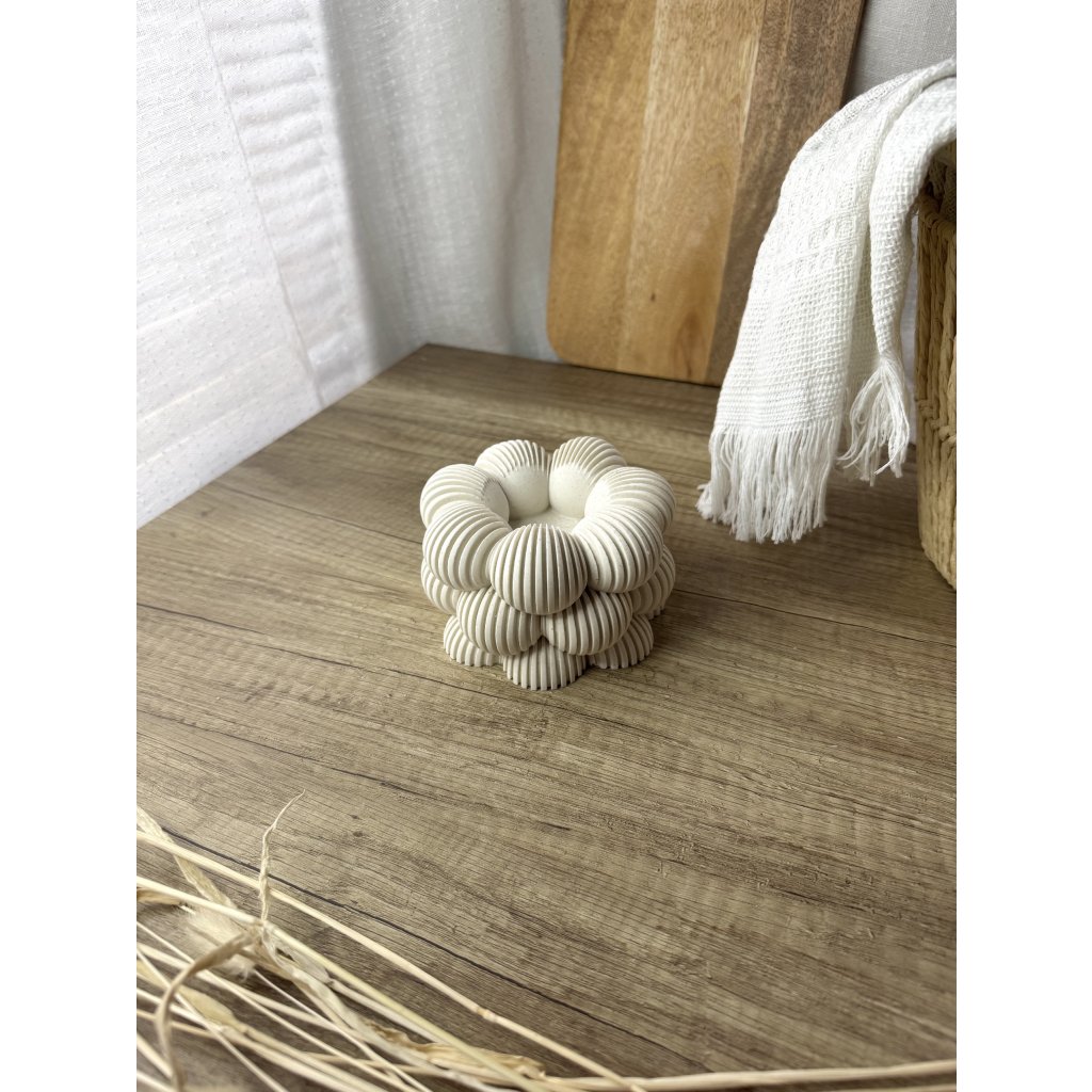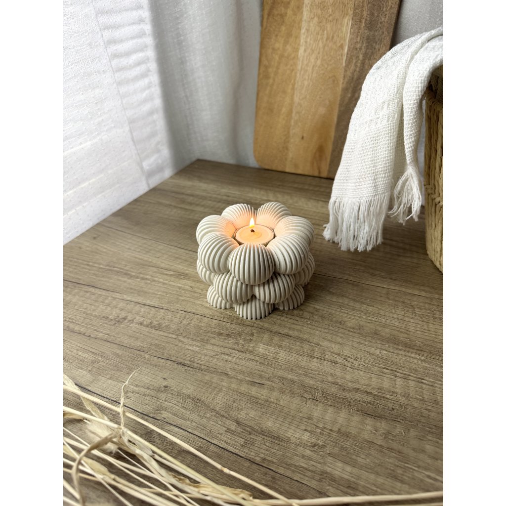 Výrazné vroubky, hravý tvar a světlo čajové svíčky, které dělá tu správnou útulnou atmosféru. Vroubkovaný svícen promění každý tvůj večer v malý jarní rituál.